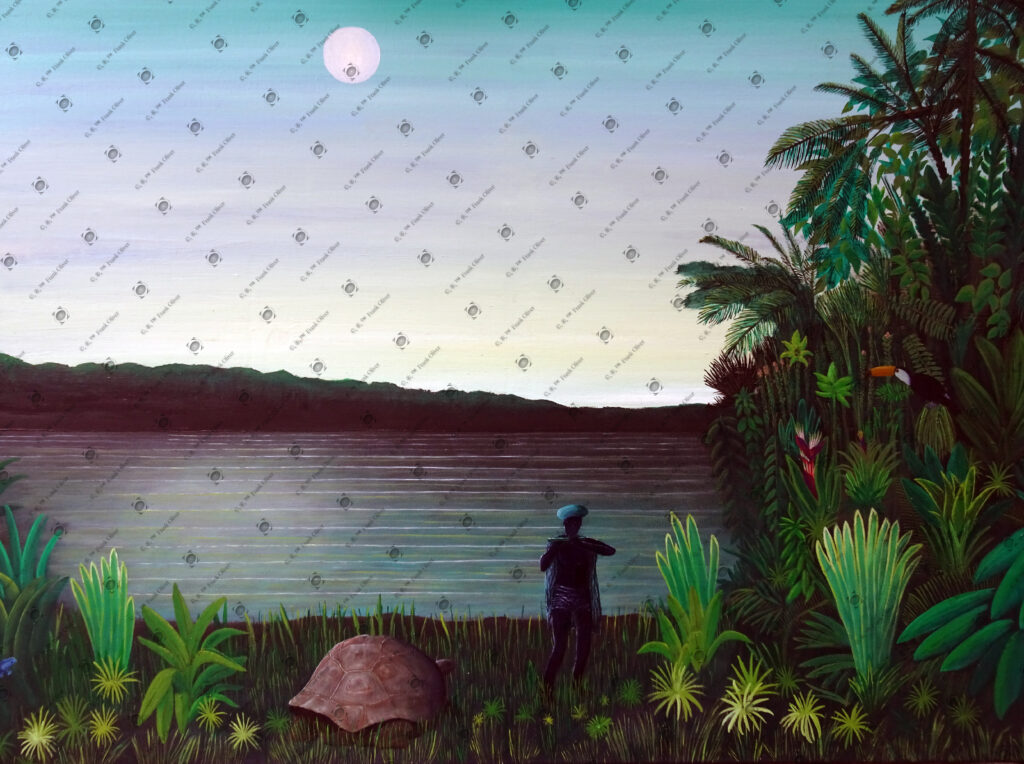 Beschwörer (Hommage an Rousseau), Öl auf Leinwand, 2021 (70 x 100 cm).