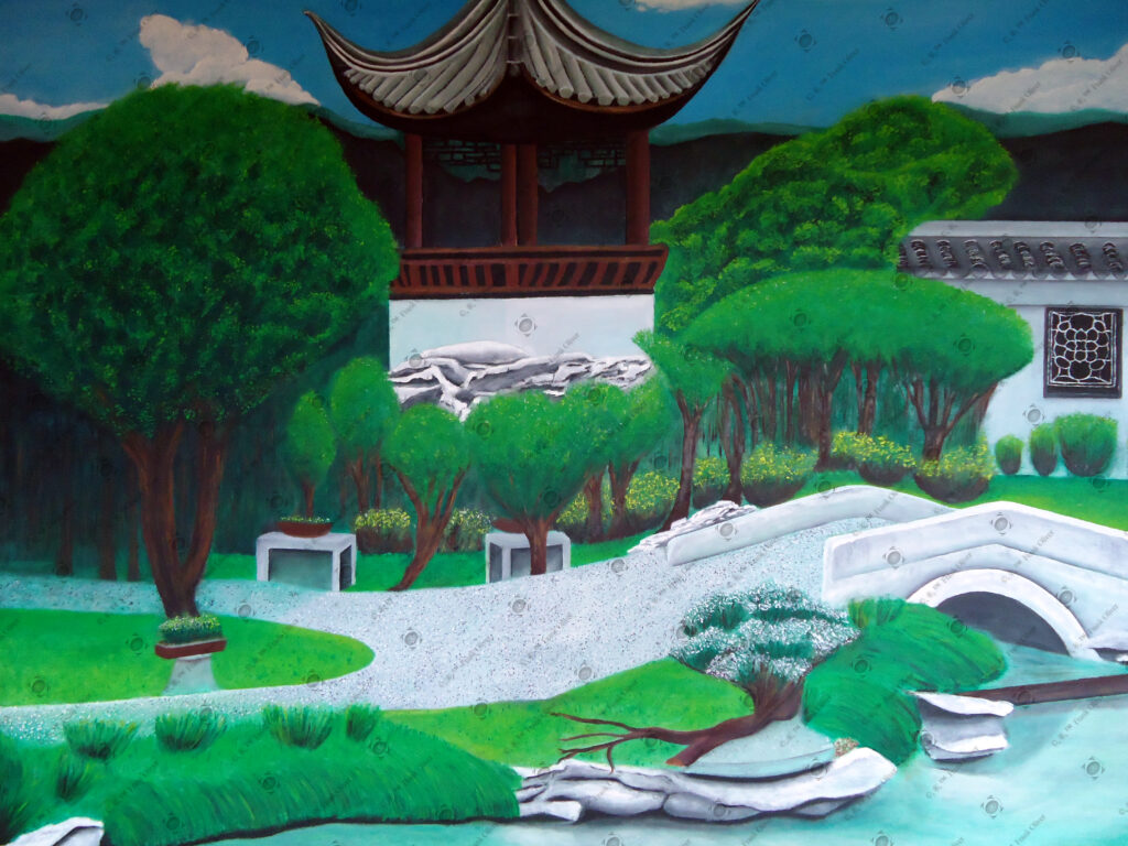 Chinesischer Garten, Öl auf Leinwand, 2004, (120 x 150 cm).