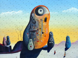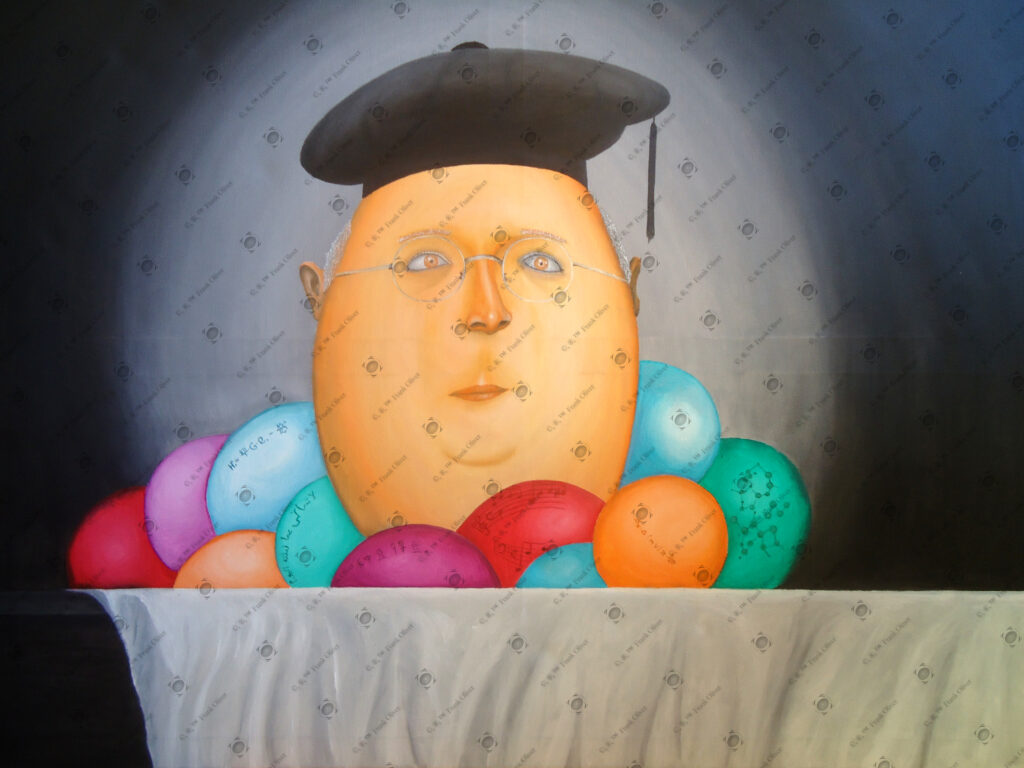 Dr. Eierkopf, Öl auf Leinwand, 2017 (80 x 100 cm).