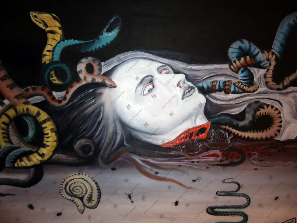 Selbsporträt als Medusa nach Rubens, Öl auf Leinwand, 2009, (50 x 70 cm).
