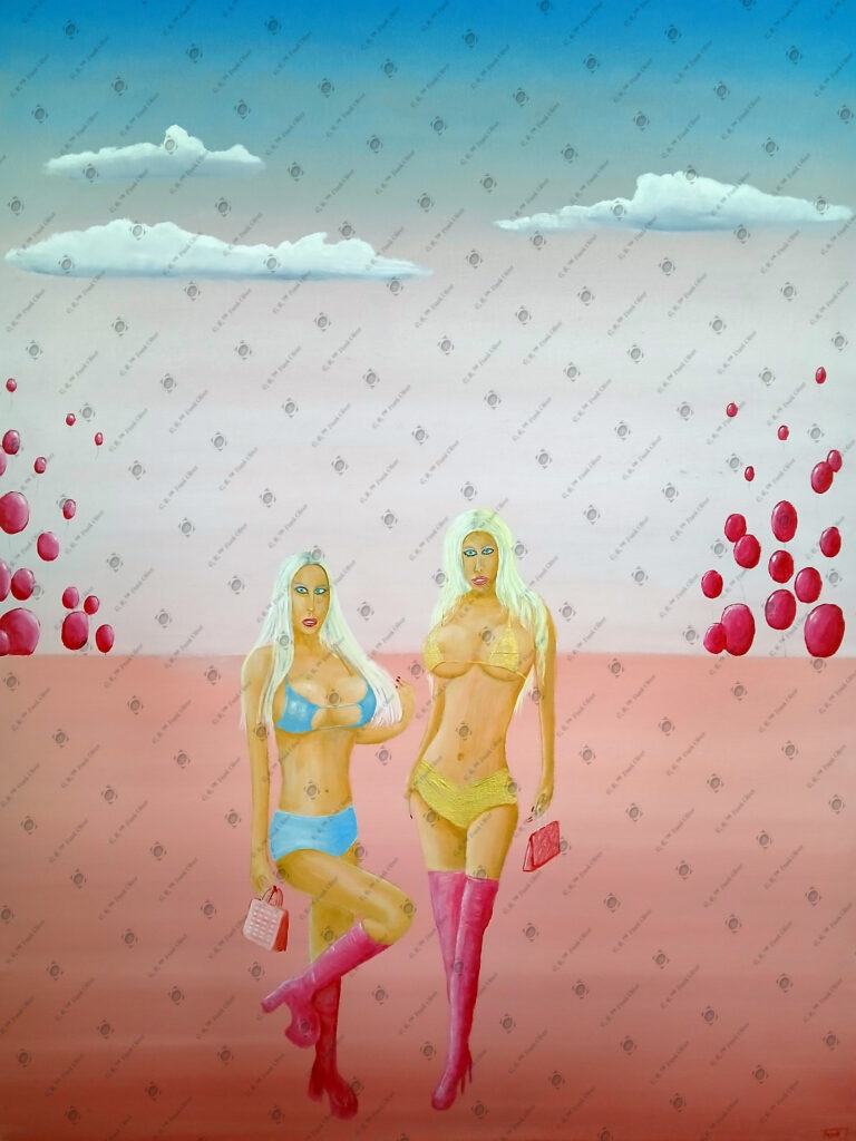 Two Bimbos, Öl auf Leinwand, 2024 (80 x 60 cm).