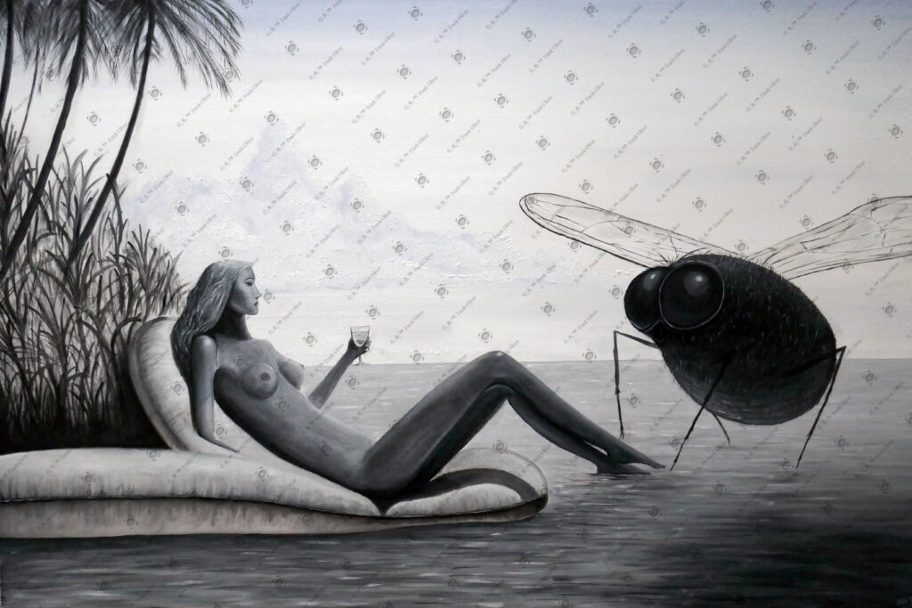 The Woman and the Fly, Öl auf Leinwand, 2024, (80 x 120 cm).